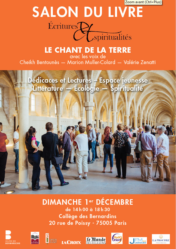 ••• Salon « Écritures et spiritualités » à Paris, au collège des Bernardins, dimanche 1er décembre de 14h à 18h